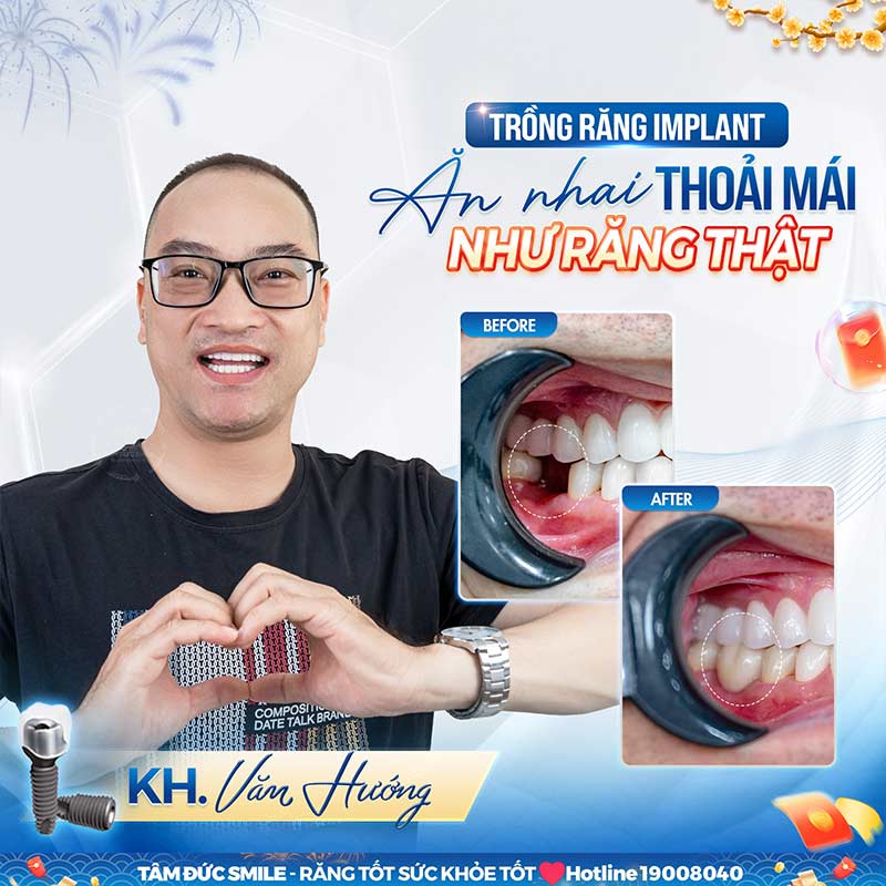 - Đã và đang có hàng chục nghìn khách hàng trồng răng Implant thành công tại nha khoa Tâm Đức Smile, 100% khách hàng đều hài lòng và được khôi phục hoàn toàn khả năng ăn nhai, lấy lại cảm giác ngon miệng.