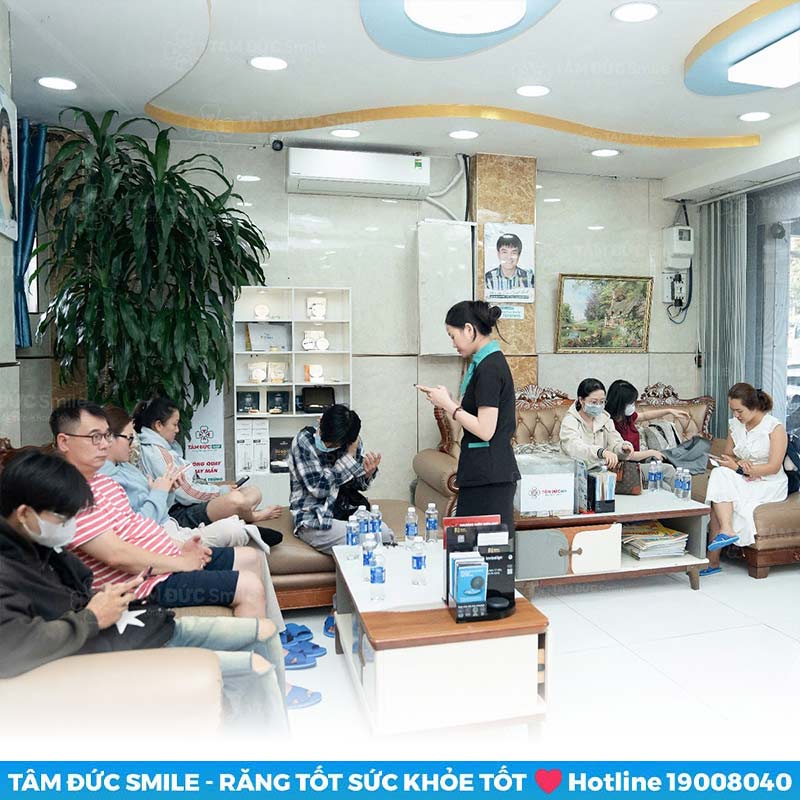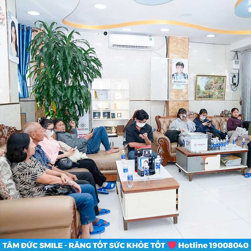 Bên cạnh việc đầu tư về chuyên môn và trang thiết bị y tế, nha khoa Tâm Đức Smile còn rất chú trọng đến trải nghiệm thăm khám của khách hàng. Khu vực sảnh chờ thoáng mát, được giữ sạch sẽ và trang bị nội thất cần thiết như ghế nệm massage, bình lọc nước, tủ kệ bảo quản đồ dùng cá nhân...