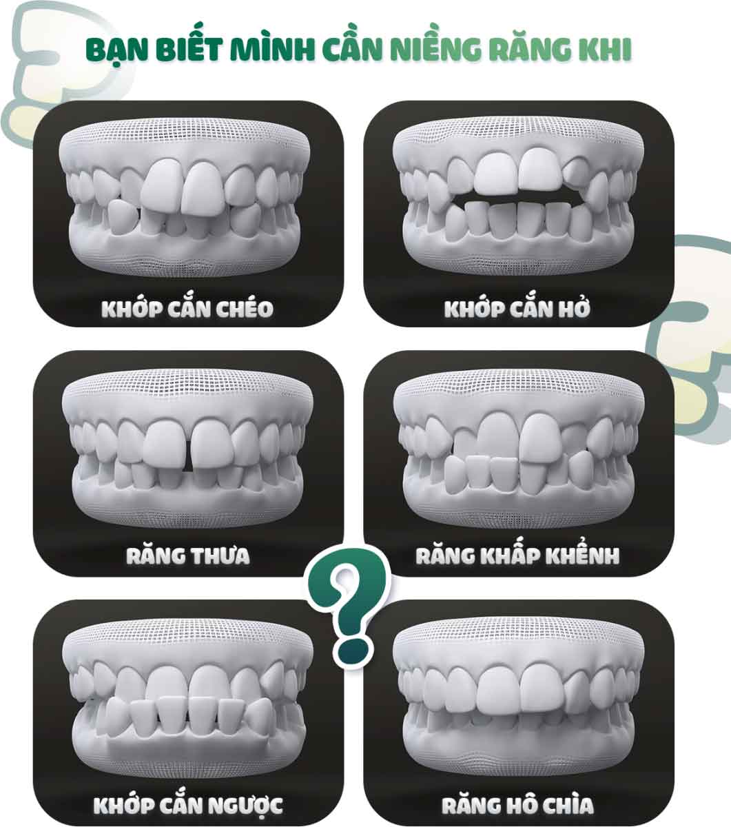 Các dáng răng cần được niềng để cải thiện thẩm mỹ