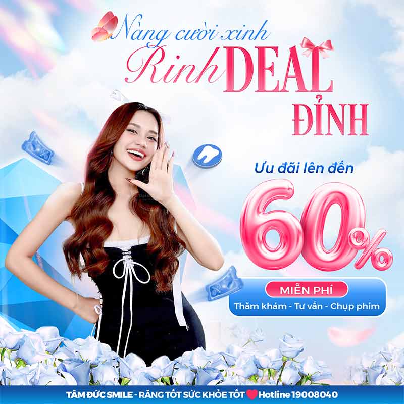 - Ưu đãi lên đến 60% cho dịch vụ bọc răng sứ thẩm mỹ.