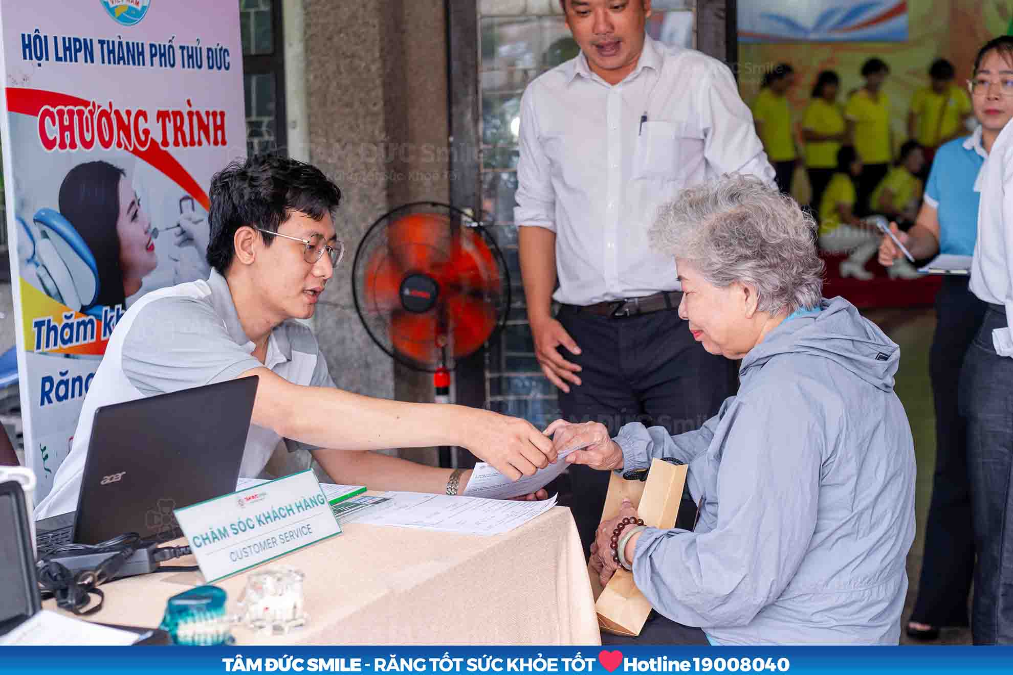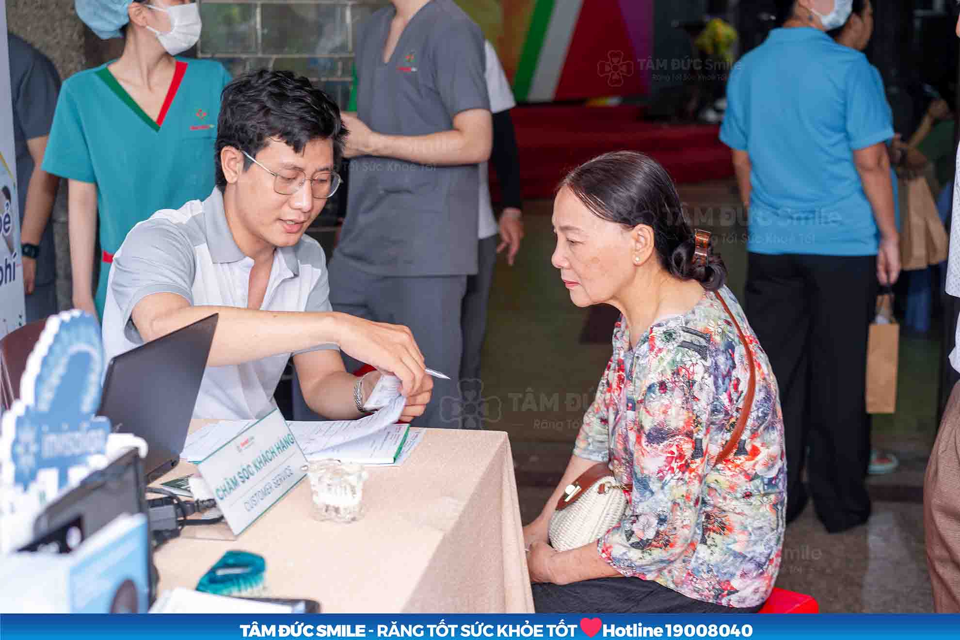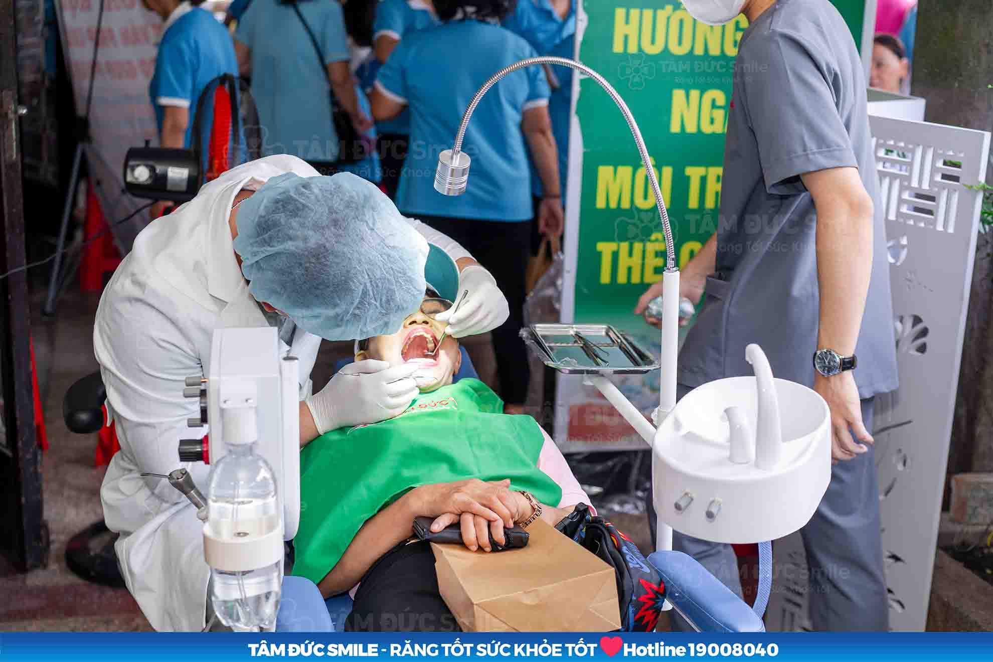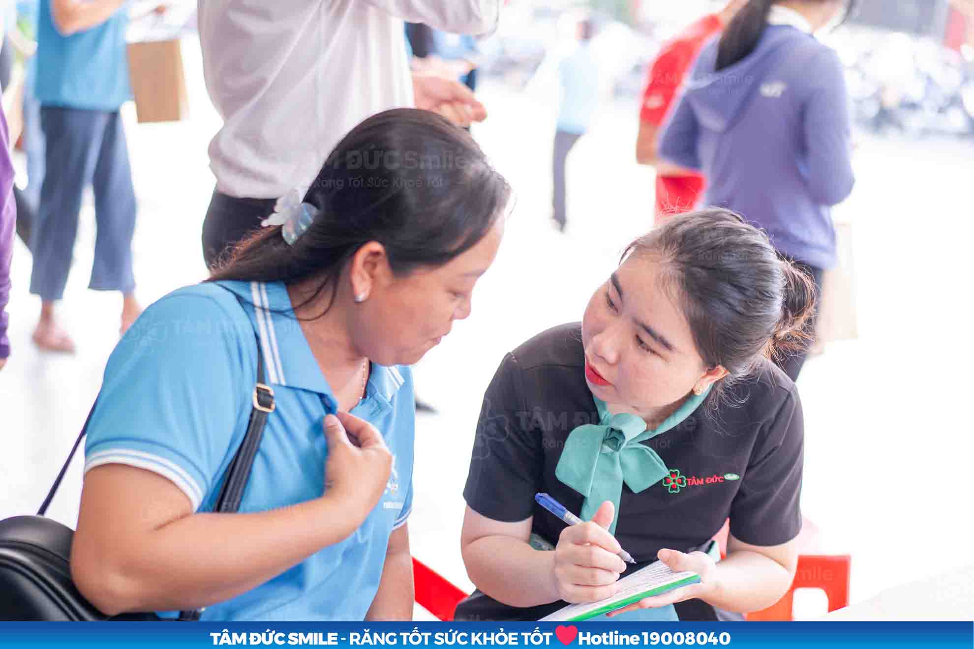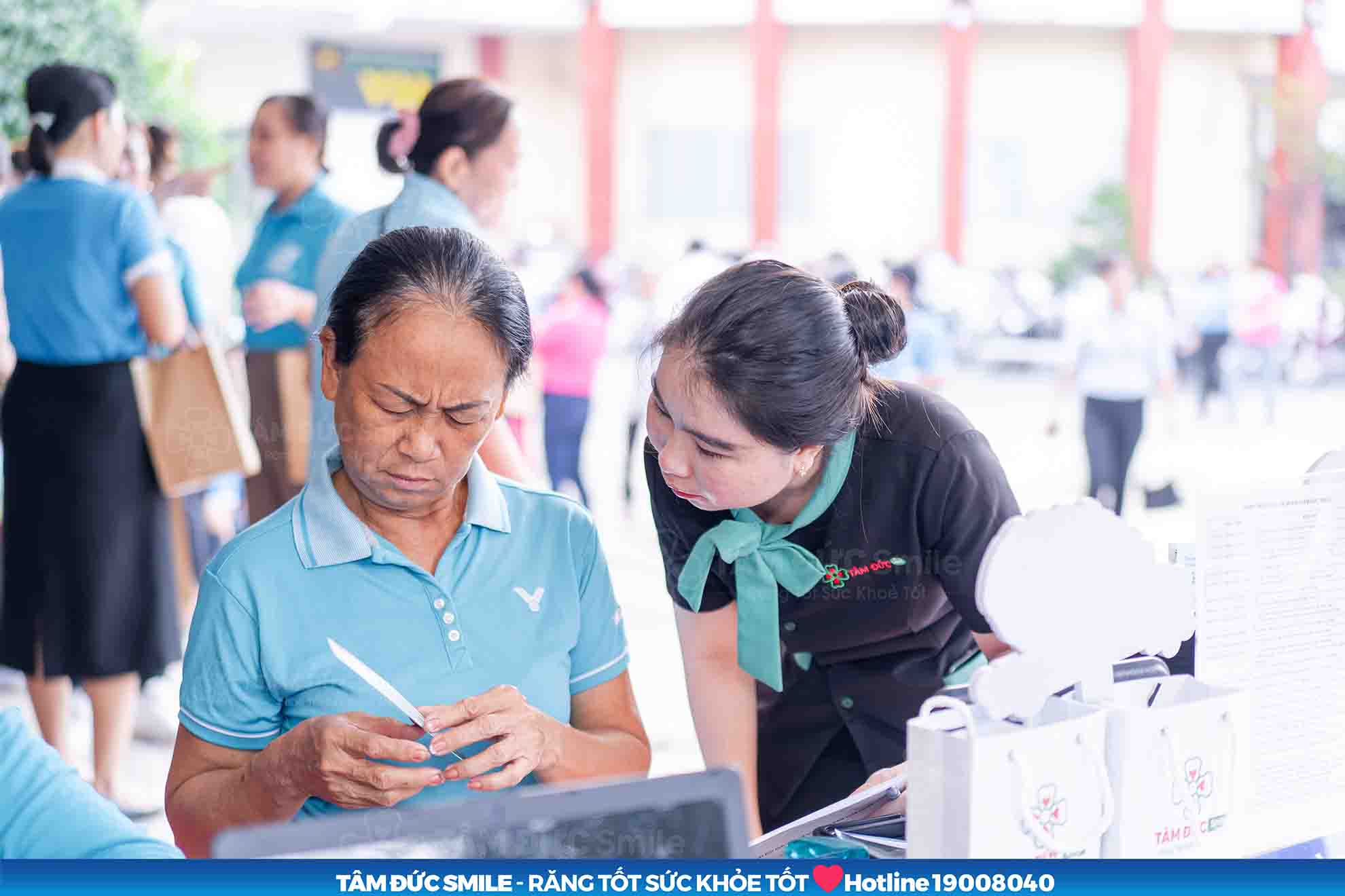 Trong sự kiện, Tâm Đức Smile rất vui khi được thăm khám sức khỏe răng miệng, tư vấn phương pháp điều trị thích hợp và gửi nhiều phần quà ý nghĩa như: nón bảo hiểm, voucher thăm khám răng trên toàn bộ hệ thống... đến bà con. Qua hoạt động, nha khoa mong giúp đỡ bà con biết được tình trạng răng miệng hiện tại của mình và có cách chăm sóc tốt hơn để đảm bảo sức khỏe dài lâu.